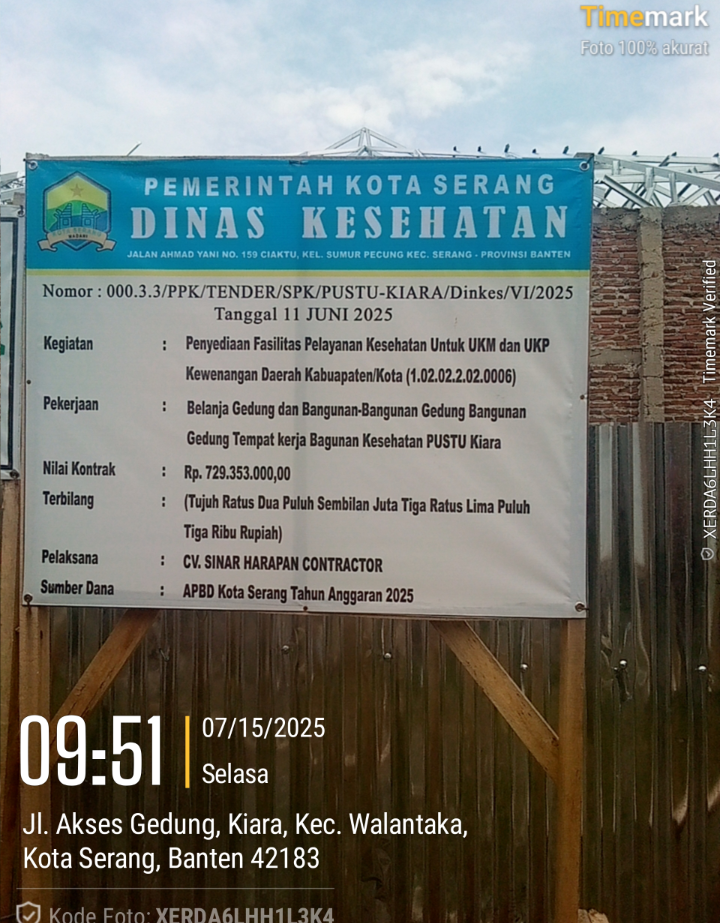 Pembangunan Pustu Kiara yang berlokasi tepatnya berada dilokasi Kp.Prisen yang bersumber dari dana APBD Kota Serang tahun anggaran 2025 ,dengan nilai kontrak Rp.729.353.000.00 yang dikerjakan oleh CV.Sinar Harapan Kontraktor disambut baik dan antusias warga Kelurahan Kiara,Kecamatan Walantaka ,Kota Serang ,Provinsi Banten