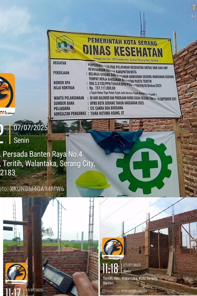 Serang,Rajawaliekspres.com.-Pekerjaan proyek gedung bangunan kesehatan PUSTU yang berlokasi di kelurahan Teritih,Kecamatan Walantaka,Kota Serang,Provinsi Banten, senilai Rp. 737.117.000.00 (tujuh ratus tiga puluh tujuh juta seratus tujuh belas ribu rupiah) yang bersumber dari dana APBD kota serang tahun anggaran 2025 di sinyalirkan mengabaikan K3 dan tidak sesuai Standar Operasional Prosedur(SOP)
