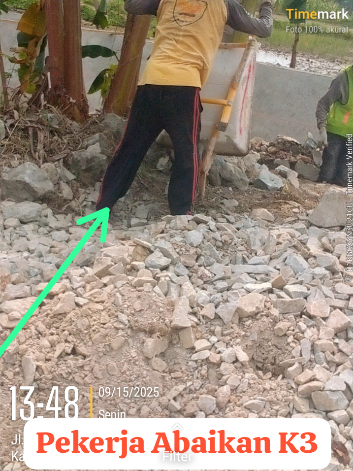 *Para pekerja abaikan keselamatan dan kesehatan kerja(K3) tanpa memakai alat pelindung diri seperti helm,rompi,kaostangan dan sepatu boot