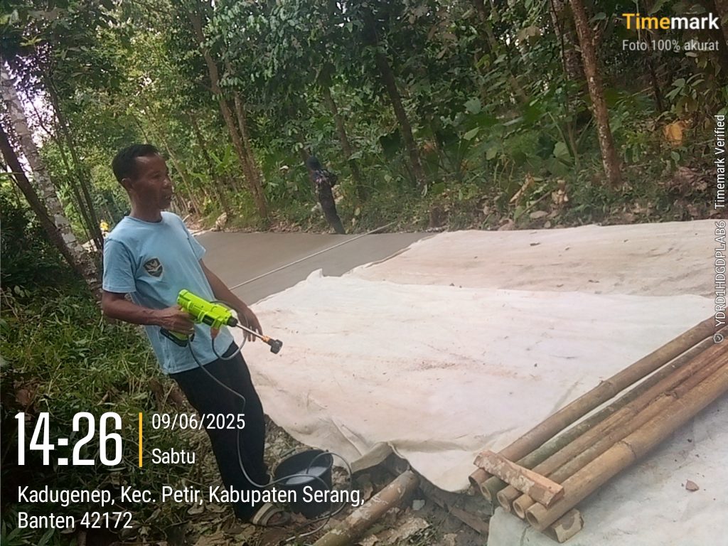Saat ditemui awak media Kepala Desa Kadugenep H.Aopidi ditempat lokasi pekerjaan Kp.Karendang ternyata sedang menyemprotkan cairan beton yg katanya agar jalan lebih kuat dan tidak cepat retak sehingga bisa bermanfaat untuk masyarakat, ucapnya.