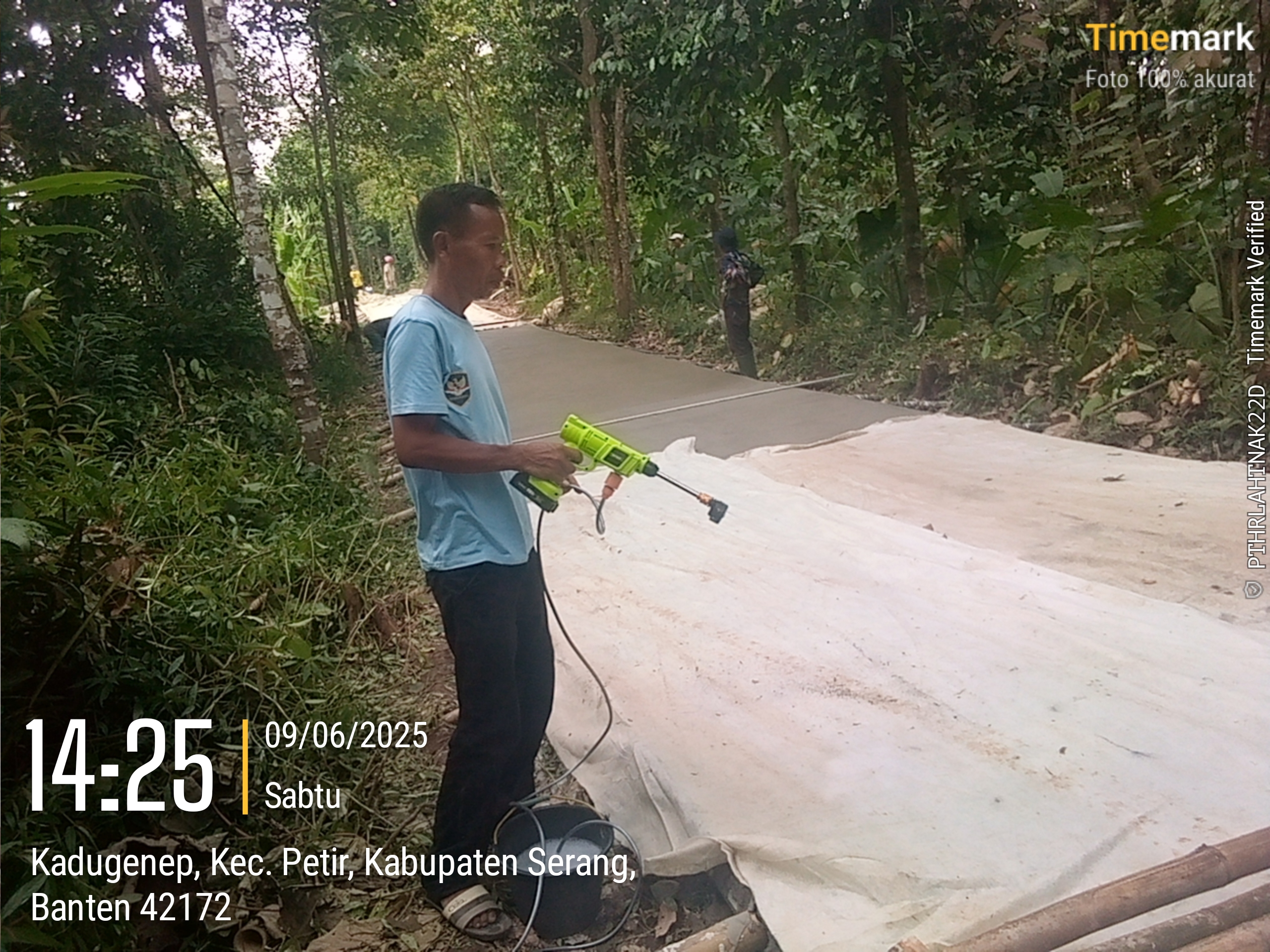 Saat ditemui awak media Kepala Desa Kadugenep H.Aopidi ditempat lokasi pekerjaan Kp.Karendang ternyata sedang menyemprotkan cairan beton yg katanya agar jalan lebih kuat dan tidak cepat retak sehingga bisa bermanfaat untuk masyarakat, ucapnya.