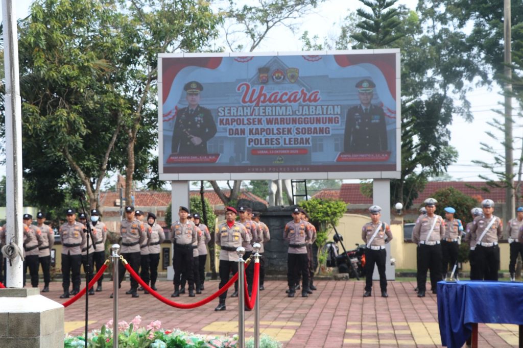 Berdasarkan Surat Keputusan Kapolda Banten Nomor:Kep/104/IX/2025 tanggal 22 September 2025 tentang Pemberhentian dan Pengangkatan Jabatan di lingkungan Polda Banten, Jabatan Kapolsek Warunggunung diserahterimakan dari AKP Bai Ma’mun,SH kepada AKP Rusnaka sedangkan Jabatan Kapolsek Sobang diserterimakan dari AKP Rusnaka kepada Iptu Heriyanto.
