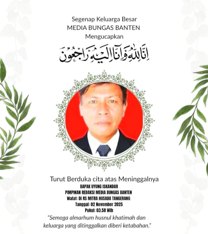BANTEN – Uyung Iskandar, seorang jurnalis senior dan pemimpin redaksi media Bungas Banten sekaligus Plt Ketua SMSI Kabupaten Pandeglang, dikenal sebagai sosok yang baik hati, ramah, dan profesional dalam menjalankan tugasnya sebagai jurnalis. Beliau sangat dicintai oleh rekan-rekan jurnalis dan masyarakat luas, namanya begitu harum kini sudah tutup usia, pada Minggu (2/11/2025) dini hari di RS Mitra Husada Tangerang, Provinsi Banten