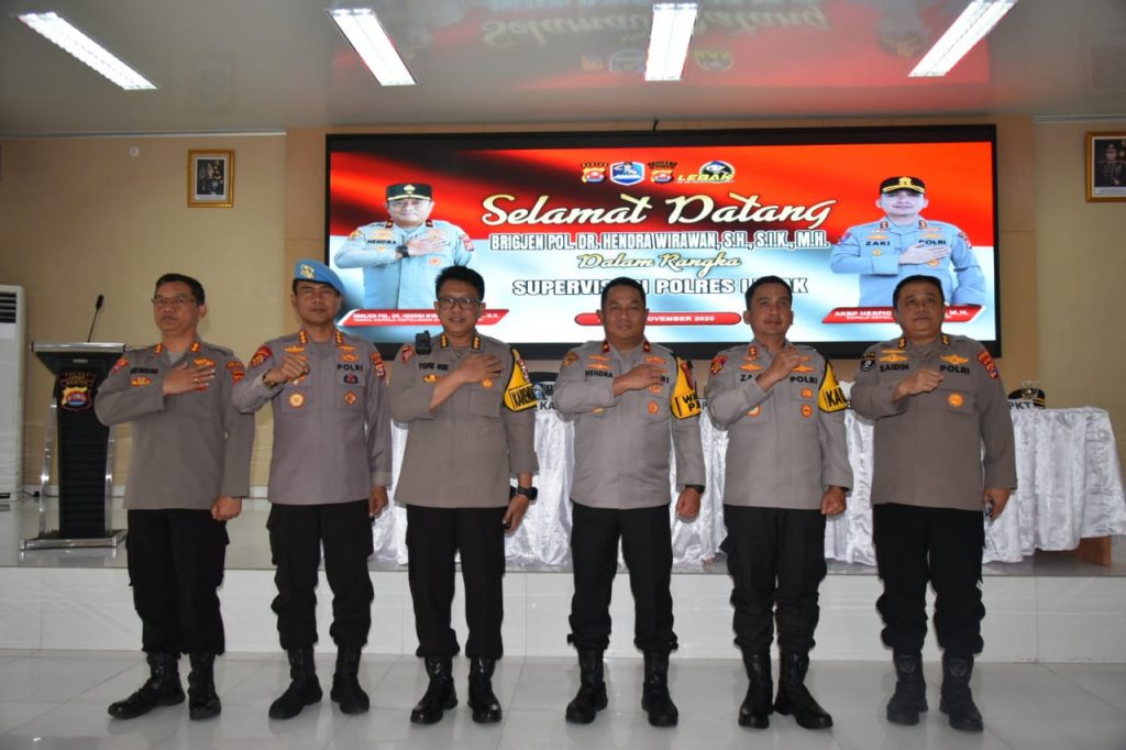 Lebak-Rajawaliekspres.Com Kapolres Lebak AKBP Herfio Zaki, S.I.K., M.H. menyambut Kunjungan Kerja (Kunker) Wakapolda Banten Brigjen Pol. Dr. Hendra Wirawan, S.H., S.I.K., M.H. dalam rangka Supervisi di Mapolres Lebak, Rabu (19/11/2025).