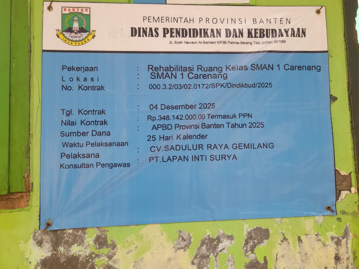 Kami mendesak dinas pendidikan provinsi banten khususnya bidang SMAN agar segera mengevaluasi kinerja CV SADULUR RAYA GEMILANG . Menurutnya projek ini harus di kerjakan dengan baik.