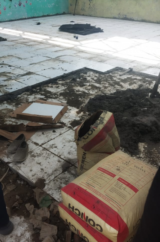 Sangat di sayangkan rehabilitas ruang kelas ini di kerjakan asal asalan. Pemasangan seharusnya melalui proses yang benar (SOP) namun terlihat seperti terburu buru tanpa memperhatikan kualitas.