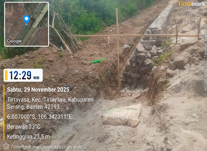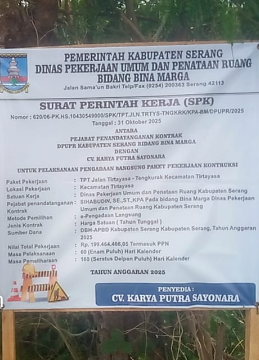 SERANG,Rajawaliekspres.com — Proyek pembangunan tembok penahan tanah (TPT) di Desa Tengkurak, Kecamatan Tirtayasa Kabupaten Serang, Banten. yang di kelola oleh Dinas Pekerjaan Umum dan Penataan Ruang (DPUPR) kabupaten Serang. bidang bina marga dengan nilai Anggaran sebesar Rp.199 juta dan di kerjakan oleh CV. Karya Putra Sayonara, untuk konsultan pengawas tidak tercantum, dengan masa pelaksanaan, 60 hari kalender dan pemeliharaan 180 hari, sumber dana dari, DBH – APBD Kabupaten Serang tahun 2025. kini menjadi sorotan publik.