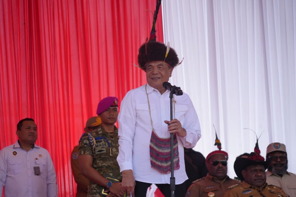 Papua Pegunungan -Rajawaliekspres.Com Menteri Koordinator Bidang Politik dan Keamanan Republik Indonesia (Menko Polkam RI) Jenderal TNI (Purn) Djamari Chaniago menghadiri upacara bakar batu di Lapangan Openg Wesaput, Kabupaten Jayawijaya, Provinsi Papua Pegunungan, Selasa (2/12/2025). Dalam kesempatan tersebut, Djamari Chaniago juga diangkat menjadi warga kehormatan Papua Pegunungan.