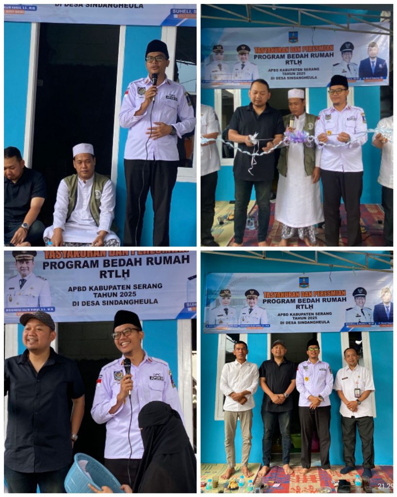 Serang,Rajawaliekspres.com. – Anggota Komisi IV DPRD Kabupaten Serang, Rendi Saputra, menghadiri sekaligus meresmikan pembangunan Rumah Tidak Layak Huni (RTLH) milik Sayuti, warga Kampung Pasir Kedung RT 024/RW 004, Desa Sindangheula, Kecamatan Pabuaran, Kabupaten Serang, pada Rabu (10/12/2025).