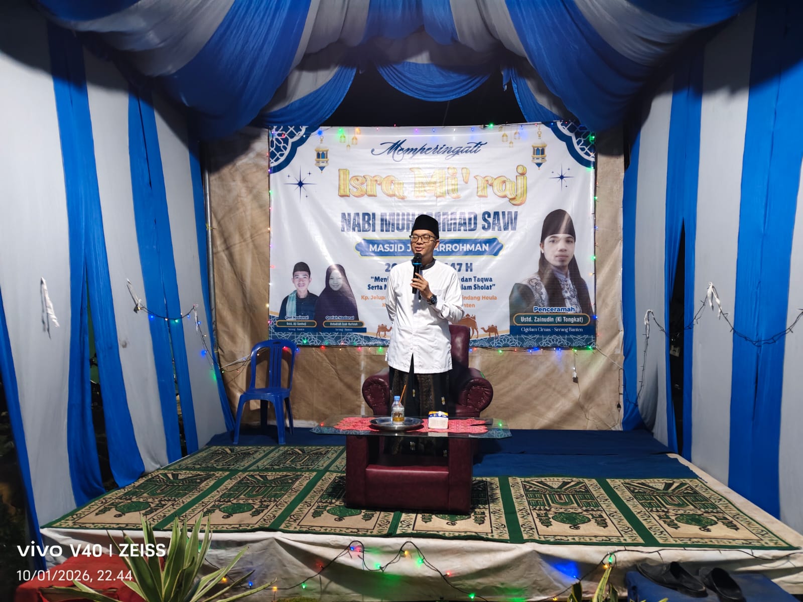 Serang,Rajawaliekspres.com– Kepala Desa Sindangheula, Suheli, menghadiri peringatan Isra Mi’raj Nabi Muhammad SAW yang digelar di Masjid Jami Arrohman, Kampung Jalupang Wetan, Desa Sindangheula, pada Sabtu malam (10/1/2026). Kegiatan keagamaan tersebut berlangsung khidmat dan dihadiri sekitar 300 jamaah dari berbagai unsur masyarakat.