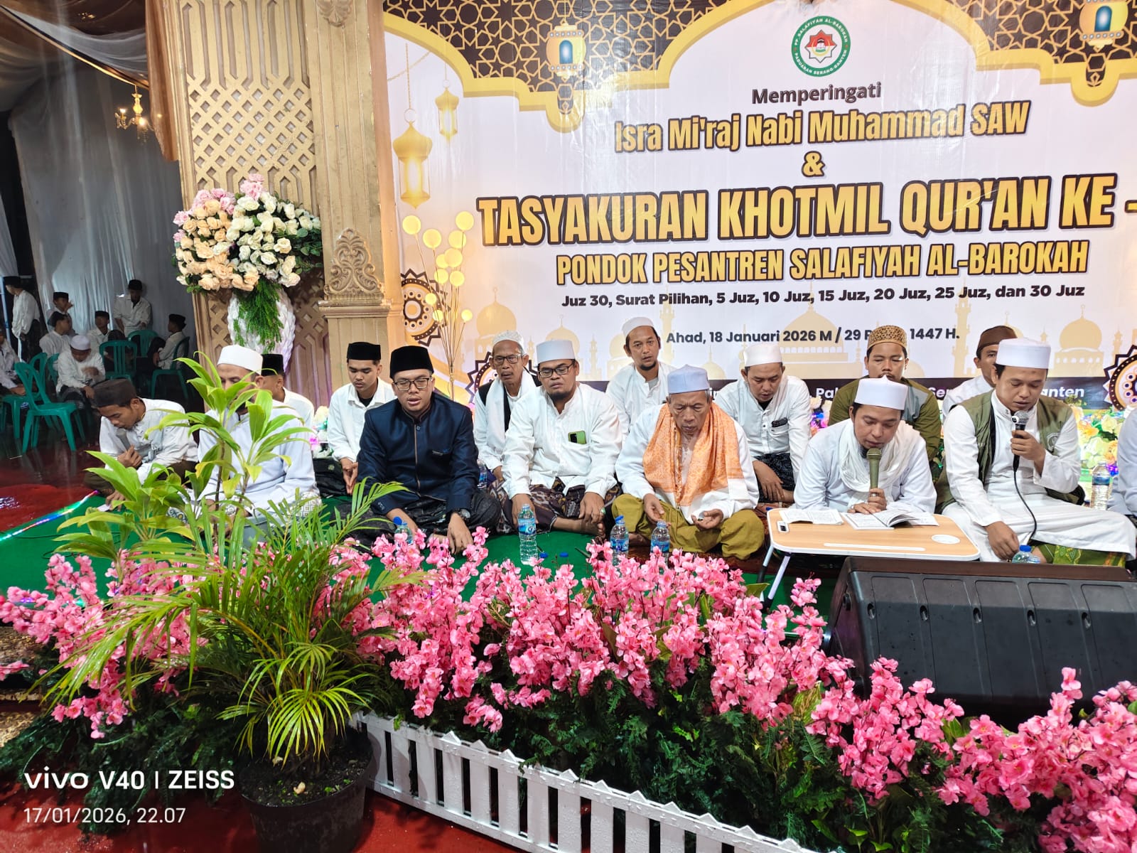 Serang,Rajawaliekspres.com – Kepala Desa Sindangheula, Suheli, S.Kom.I., M.M. hadir peringatan Isra Mi’raj Nabi Muhammad SAW sekaligus Tasyakuran Khotmil Qur’an ke-4 pada Sabtu malam, 17 Januari 2026 di Pondok Pesantren Salafiyah Al-Barokah Kampung Ranca Sumur, Desa Sindangsari, Kecamatan Pabuaran, Kabupaten Serang. Acara berlangsung khidmat dengan kehadiran sekitar 200 jamaah yang terdiri dari para alim ulama, ustadz, masyarakat Ranca Sumur, santriwan-santriwati.
