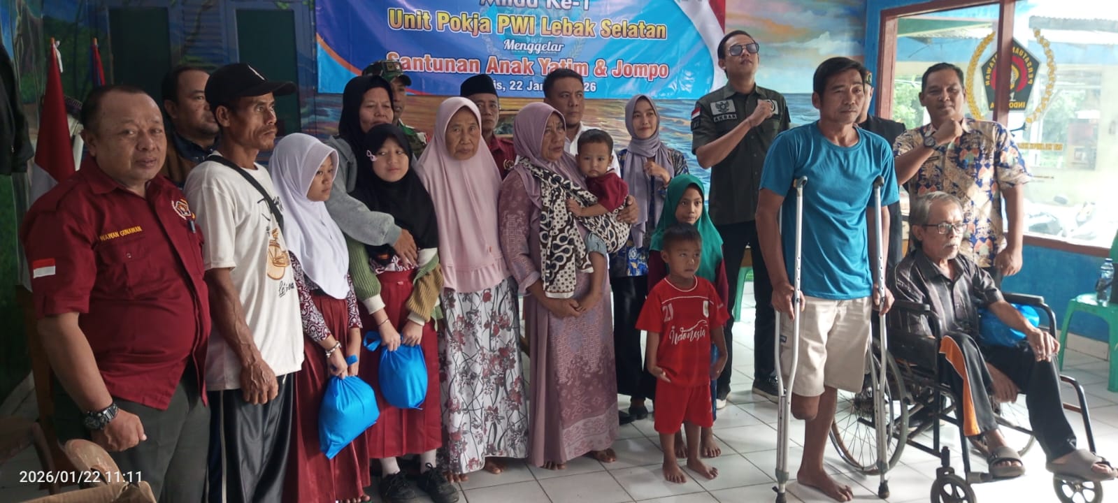 LEBAK|Rajawaliekspres.Com Dalam menyongsong dan meriahkan Hari Pers Nasional ( HPN ) 2026 yang akan dilaksanakan di Provinsi Banten, Unit Kelompok Kerja ( Unit Pokja ) PWI Lebak Selatan peringati Milad ke-1 menggelar acara santunan anak yatim dan jompo bertempat di Sekretariat Unit Pokja PWI Lebak Selatan tepatnya di ruas jalan Nasional III Bayah – Cibareno KM.02, Kampung Jogjogan, Desa Darmasari, Kecamatan Bayah, Kabupaten Lebak, Provinsi Banten, Kamis ( 22/01/2026 ).