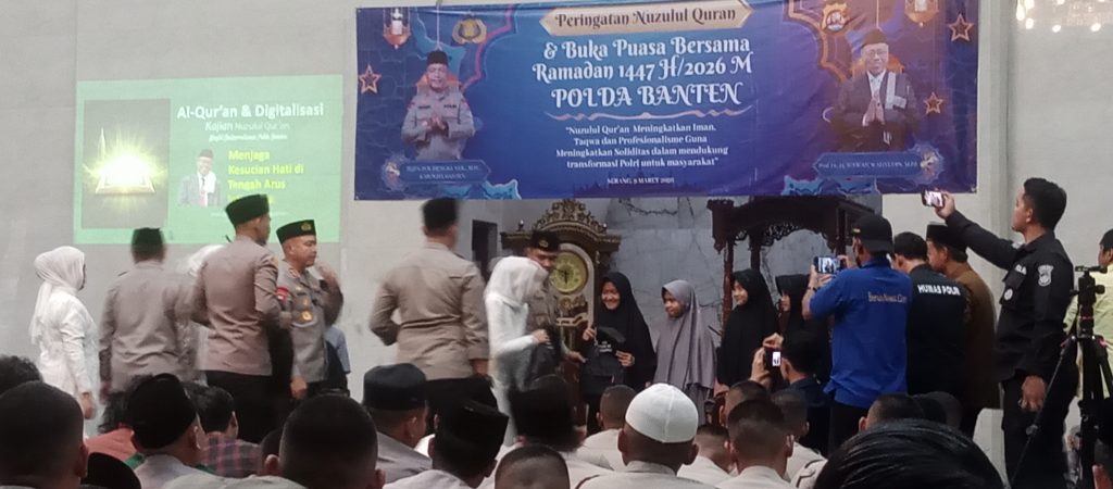 Kegiatan tersebut diikuti sekitar 700 peserta yang terdiri dari Pejabat Utama Polda Banten.irwasda Polda Banten brigjen pol Hendra kurniawan beserta personel kepolisian, Bhayangkari,Polda Banten serta Kapolresta serang kombes pol Yudha satria,S.H.,S.I.K.,M.H serta anak-anak yatim. Peringatan Nuzulul Qur’an diharapkan dapat memperkuat nilai spiritual sekaligus meningkatkan semangat pengabdian personel Polri.mahasiswa dan insan pers kepada masyarakat, bangsa, dan negara.(Red-Tim/RJ)